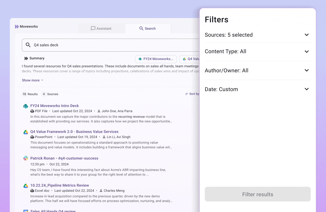 Extend search capabilities beyond the browser with companion apps for Teams and Slack, as well as intranets, service portals, and more.
