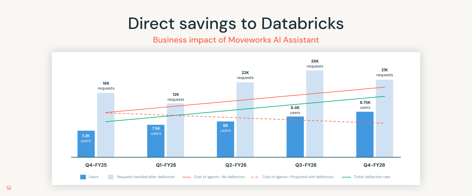 Databricks’ investment in an agentic AI Assistant, powered by Moveworks, has fundamentally changed how the company scales support and drives operational excellence. R2DB helps not only cut costs but also empower employees with instant access to answers and actions — enhancing productivity across the board.