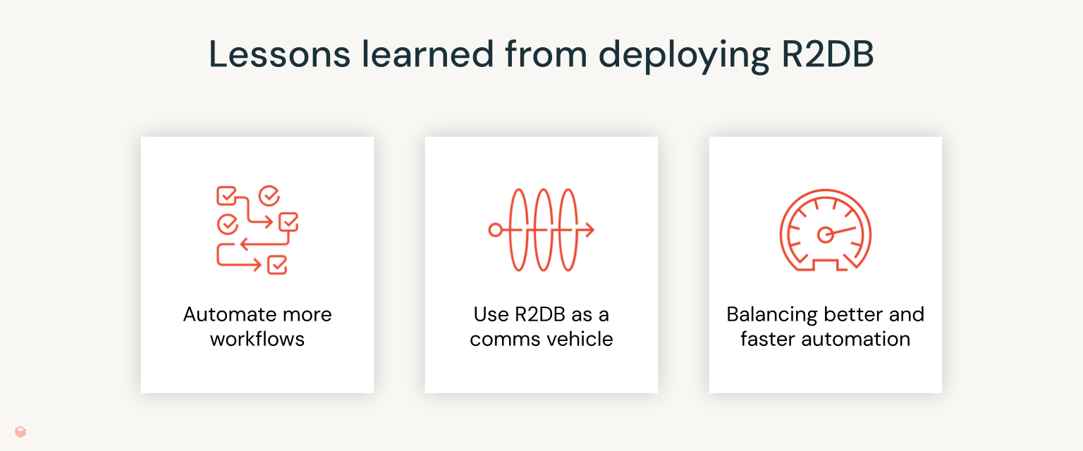While the team moved quickly to deploy R2DB in just eight weeks, they later saw the importance of refining PRDs and prioritizing MVP goals. This helped ensure that new workflows were not just fast to launch, but also effective in meeting user needs.