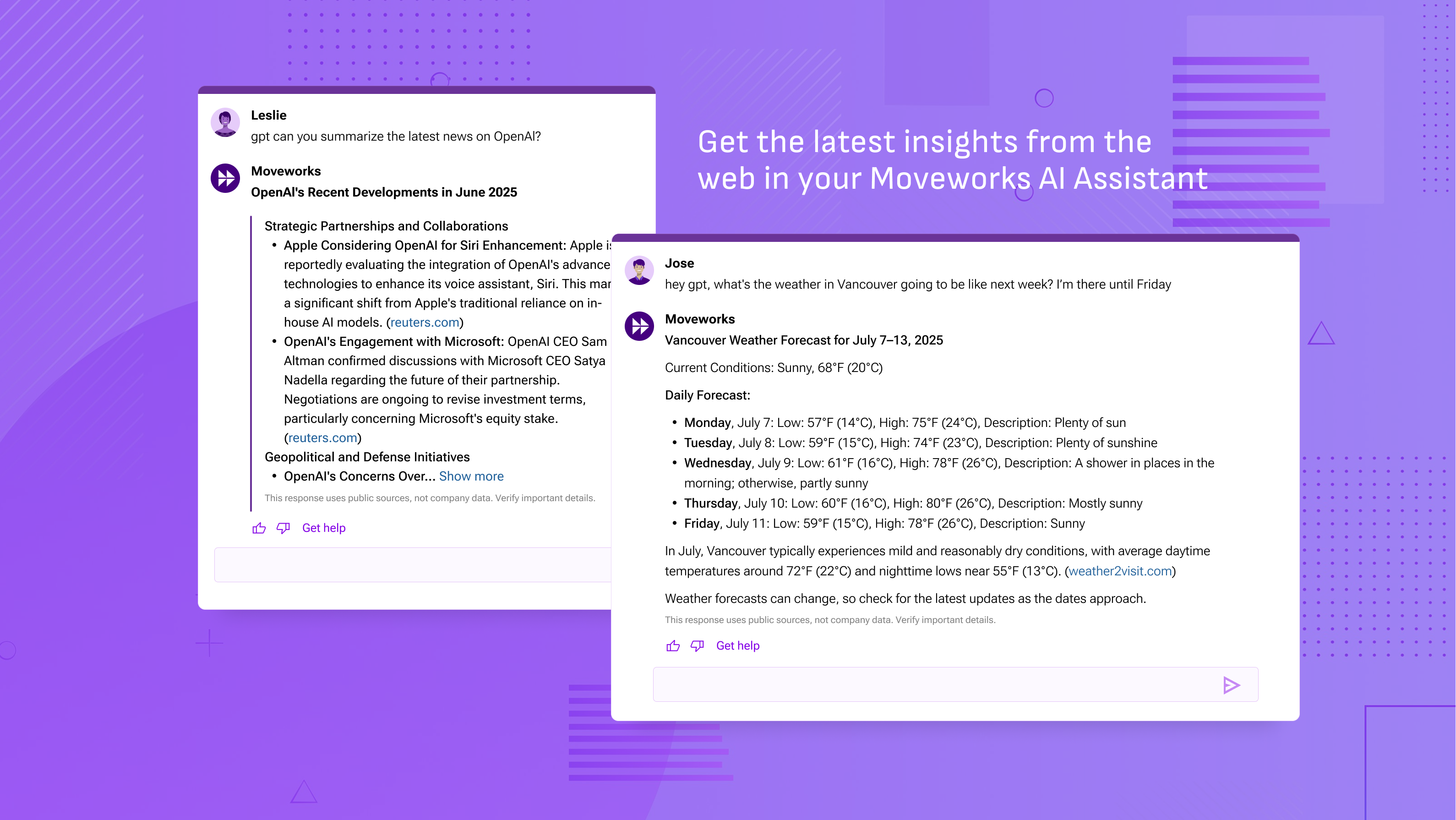 That’s why we’re excited to announce that starting today, Moveworks supports web search in Quick GPT – so you can unlock insights from live web data right within your Moveworks Assistant.