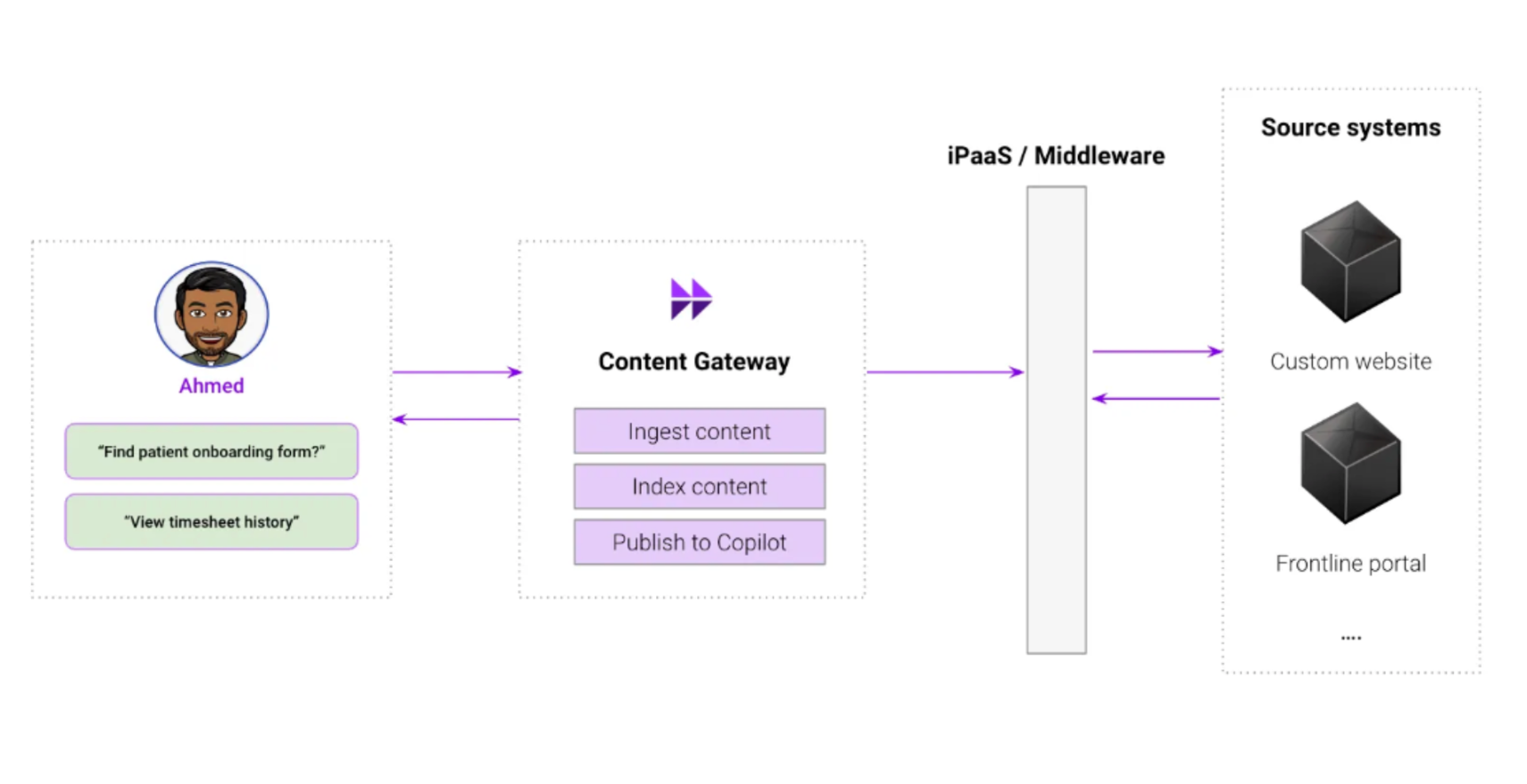 This Content Gateway approach makes it possible for your Copilot to be integrated with bespoke business systems. It enables your employees to be more productive with a search platform that spans across all your systems.