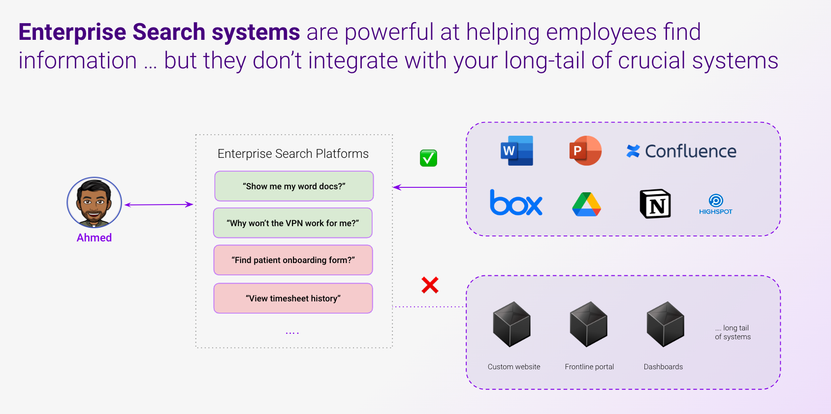 Lack of custom integrations & out-of-date information break Enterprise Search