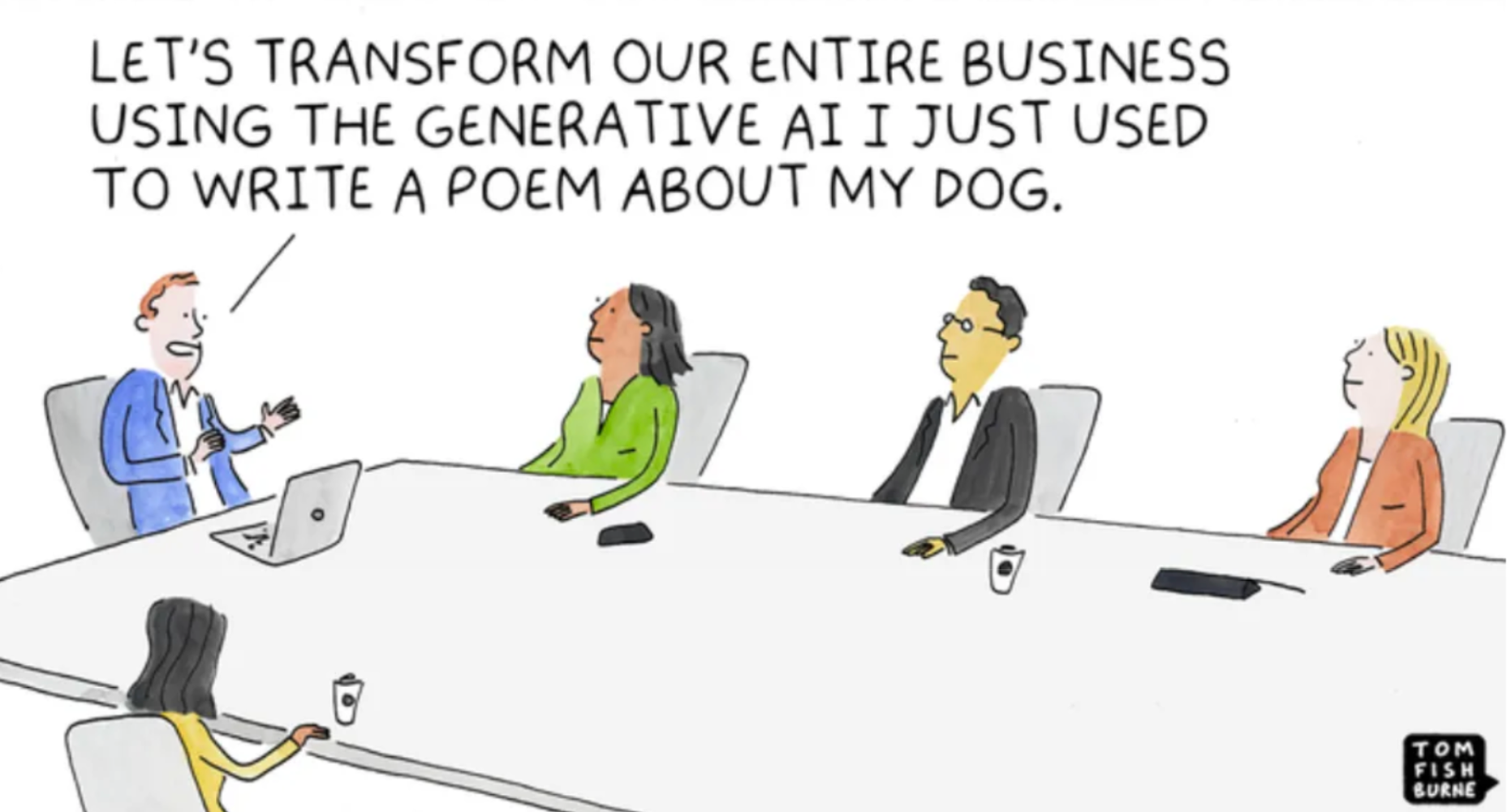 The Cambrian explosion from an app that could write a poem to a paradigm-shifting business technology was best captured by a cartoon.