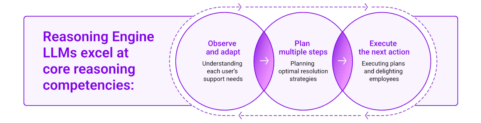 Our Reasoning Engine leverages this agentic AI framework to transform how enterprises handle everyday employee challenges. Here's how it works: