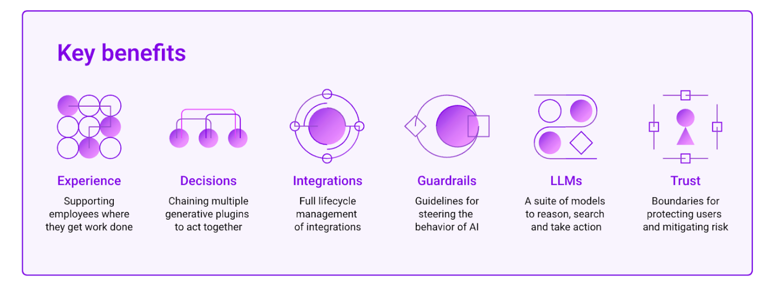 Modular problem-solving: The AI breaks down complex issues into smaller, manageable steps. It then executes these steps sequentially using various plugin capabilities, allowing it to operate across different enterprise systems.