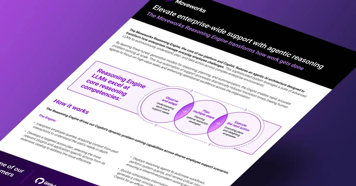Moveworks is proud to sponsor AWS re:Invent on December 2 - 5 in Las Vegas, NV. Discover how we’re pushing productivity boundaries and enhancing employee experience with agentic AI. Meet with our team at booth # 171 to learn how the Moveworks Copilot goes beyond simple search and action.