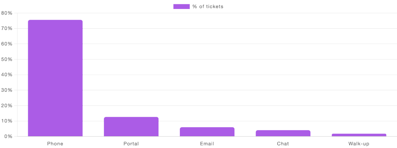 Based on our data, employees preferred to contact IT over the phone 44.2% of the time. We wanted to dig deeper into this — why did employees turn to the phone? Was it the most efficient channel?