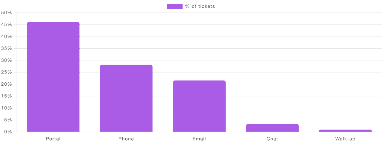 With this lack of insight in mind, we categorized millions of issues from nearly 50 enterprise companies. Then, we sorted them into the 5 channels: phone, portal, email, chat, and walk-up.